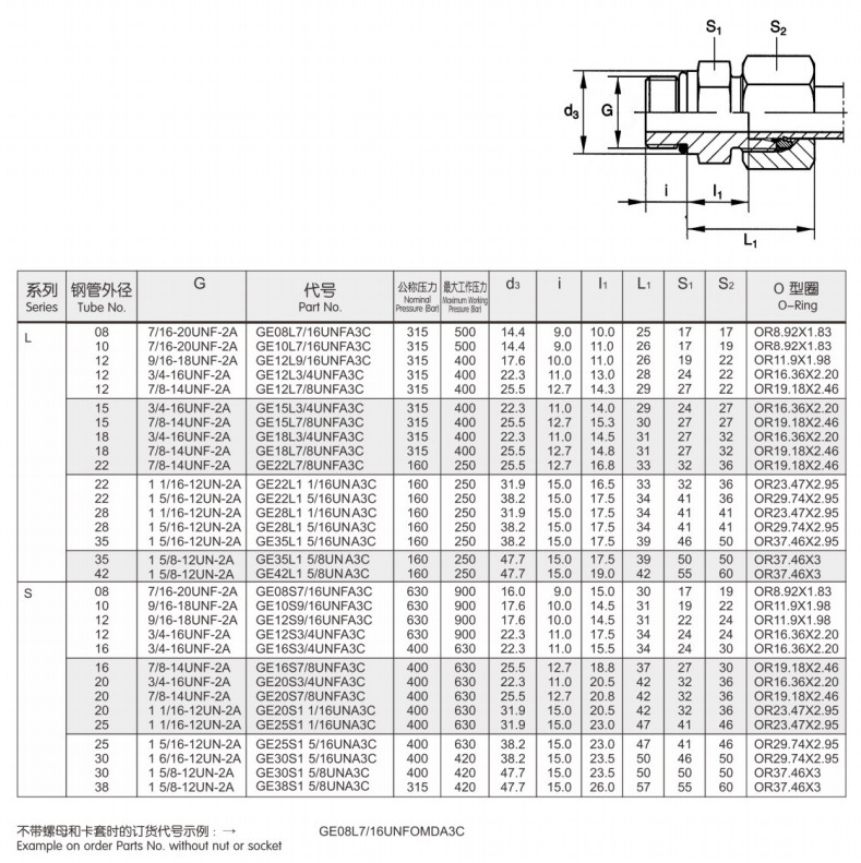 GE12S9/16UNFA3C,GE12S3/4UNFA3C,GE16S3/4UNFA3C,GE16S7/8UNFA3C,