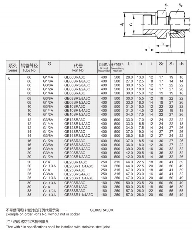 GE12SR1/4A3C,GE12SR1/2A3C,GE14SRA3C,GE14SR3/8A3C,GE14SR3/4A3C,GE16SRA3C,