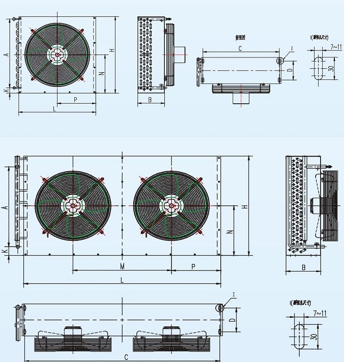 ◆可根據(jù)客戶要求配置不同形式冷凝風(fēng)機(jī); |