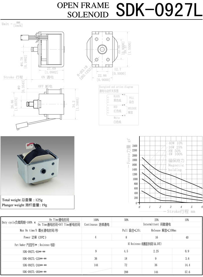 詳細(xì)信息 SDK-0927L-6A,SDK-0927L-12A,SDK-0927L-24A,SDK-0927L-48A,直動(dòng)電磁鐵