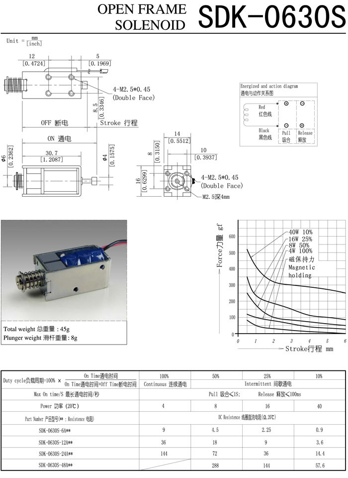 詳細(xì)信息 SDK-0630S-6A,SDK-0630S-12A,SDK-0630S-24A,SDK-0630S-48A,直動(dòng)電磁鐵