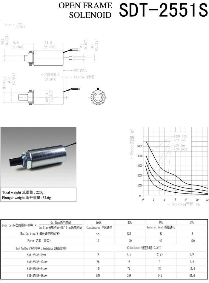 SDT-2551S-6A,SDT-2551S-12A,SDT-2551S-24A,SDT-2551S-48A,直動電磁鐵