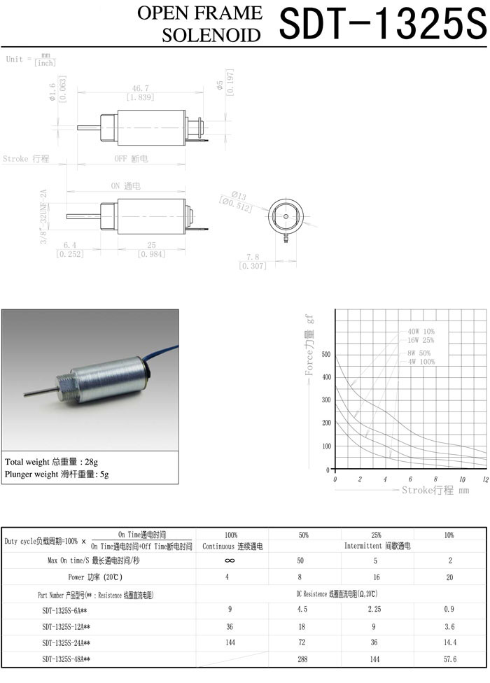 詳細(xì)信息 SDT-1325S-6A,SDT-1325S-12A,SDT-1325S-24A,SDT-1325S-48A,直動(dòng)電磁鐵