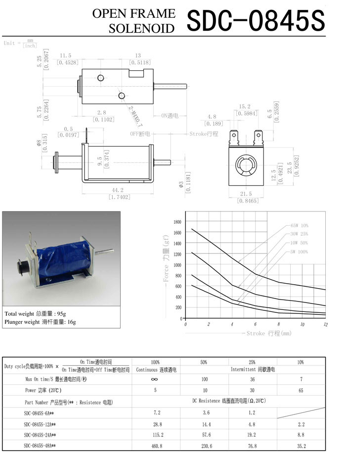 詳細信息 SDC-0845S-6A,SDC-0845S-12A,SDC-0845S-24A,SDC-0845S-48A,直動電磁鐵