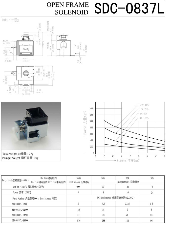 詳細(xì)信息 SDC-0837L-06A,SDC-0837L-12A,SDC-0837L-24A,SDC-0837L-48A,直動(dòng)電磁鐵
