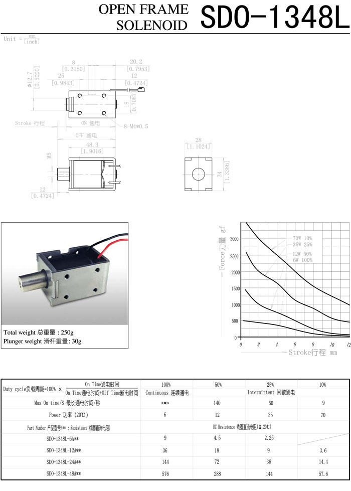 詳細(xì)信息 SDO-1348L-6A,SDO-1348L-12A,SDO-1348L-24A,SDO-1348L-48A,直動電磁鐵