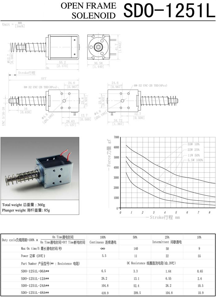 詳細(xì)信息 SDO-1251L-06A,SDO-1251L-12A,SDO-1251L-24A,SDO-1251L-48A,直動(dòng)電磁鐵