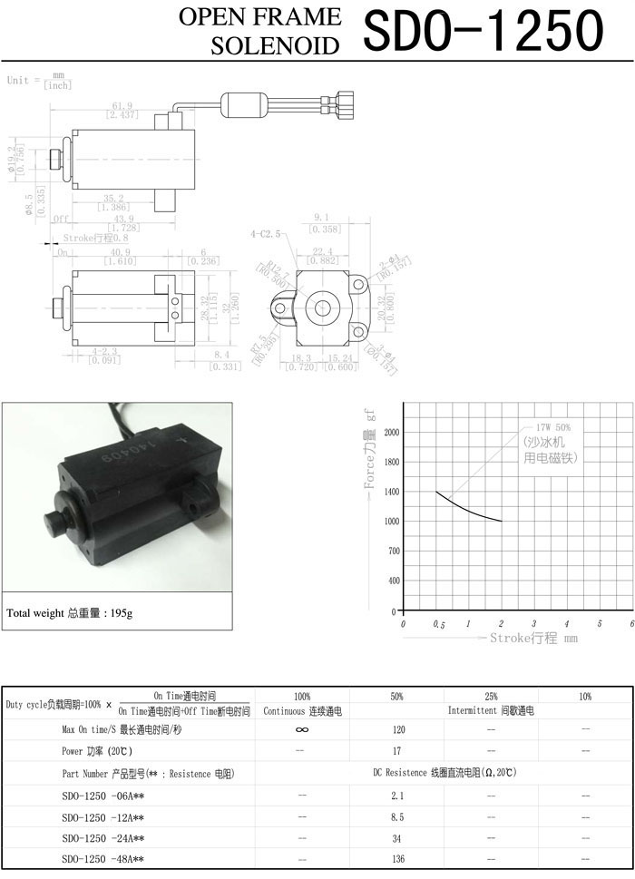 SDO-1250-06A,SDO-1250-12A,SDO-1250-24A,SDO-1250-48A,直動(dòng)電磁鐵