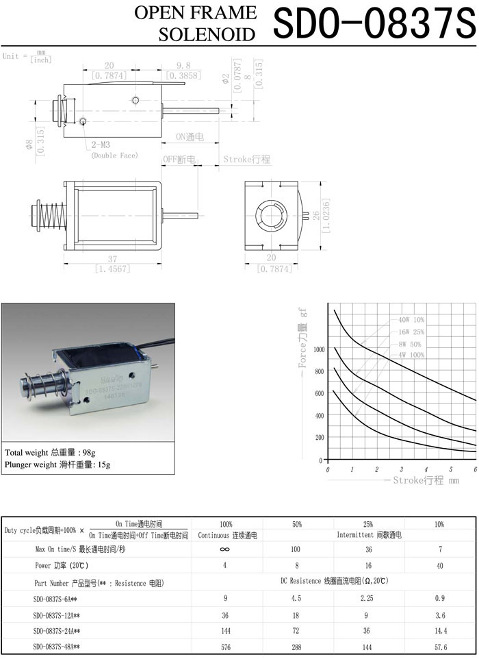詳細(xì)信息 SDO-0837S-6A,SDO-0837S-12A,SDO-0837S-24A,SDO-0837S-48A,直動電磁鐵