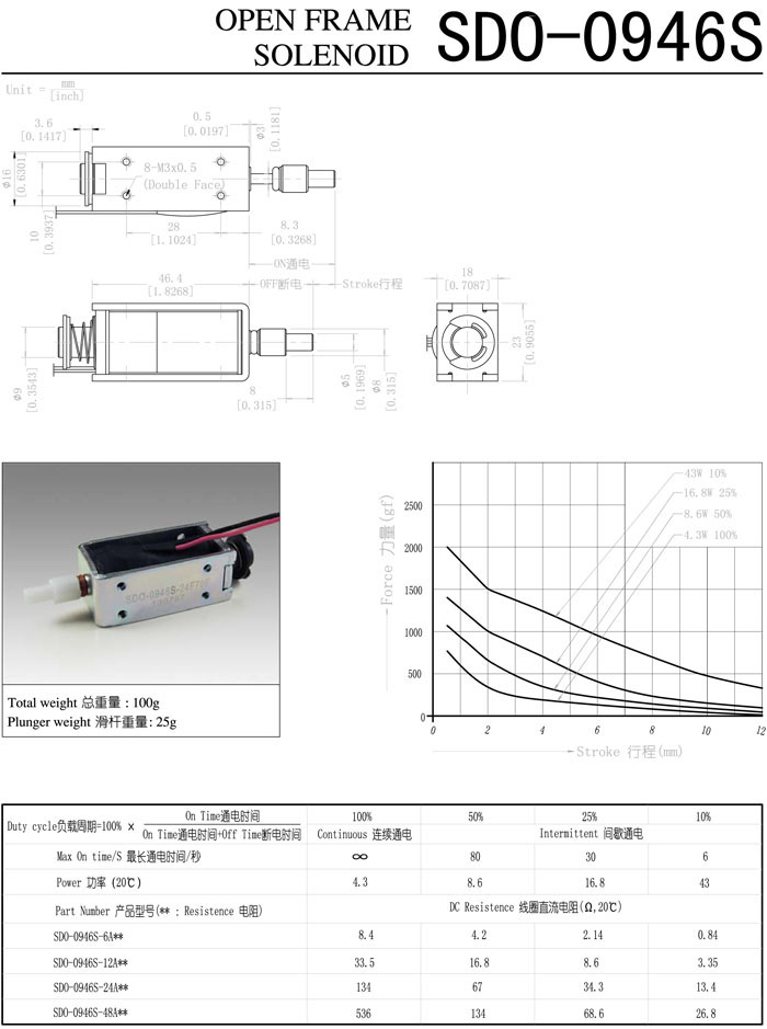 SDO-0946S-6A,SDO-0946S-12A,SDO-0946S-24A,SDO-0946S-48A,直動電磁鐵