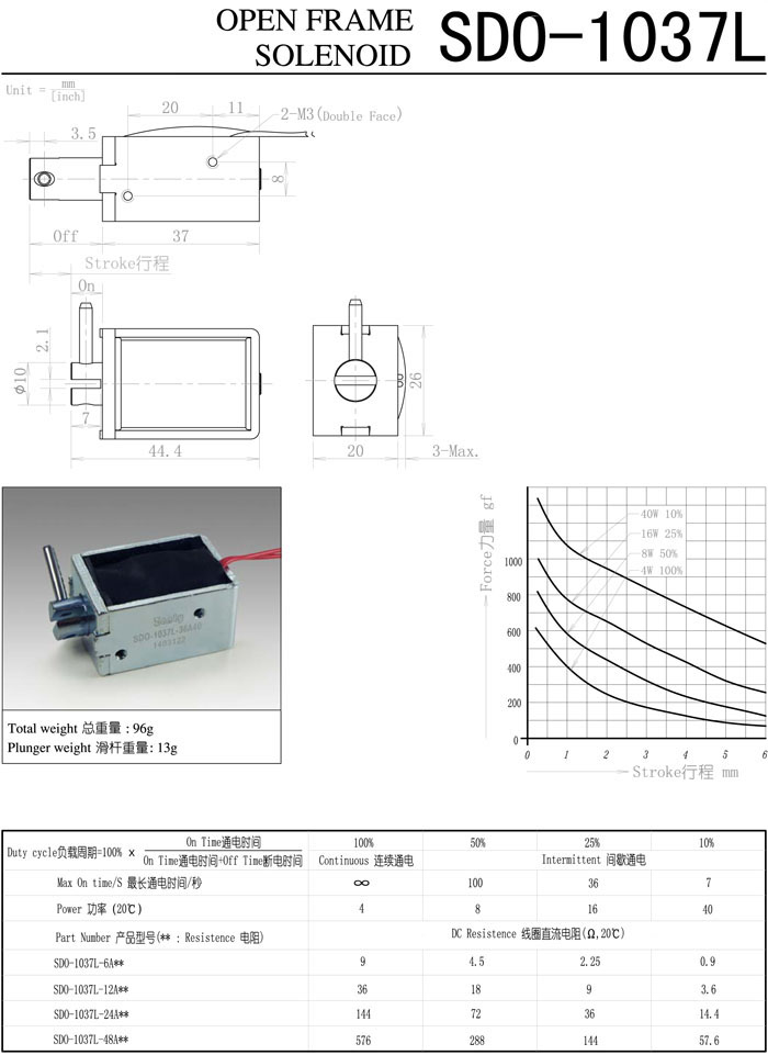詳細(xì)信息 SDO-1037L-6A,SDO-1037L-12A,SDO-1037L-24A,SDO-1037L-48A,直動(dòng)電磁鐵