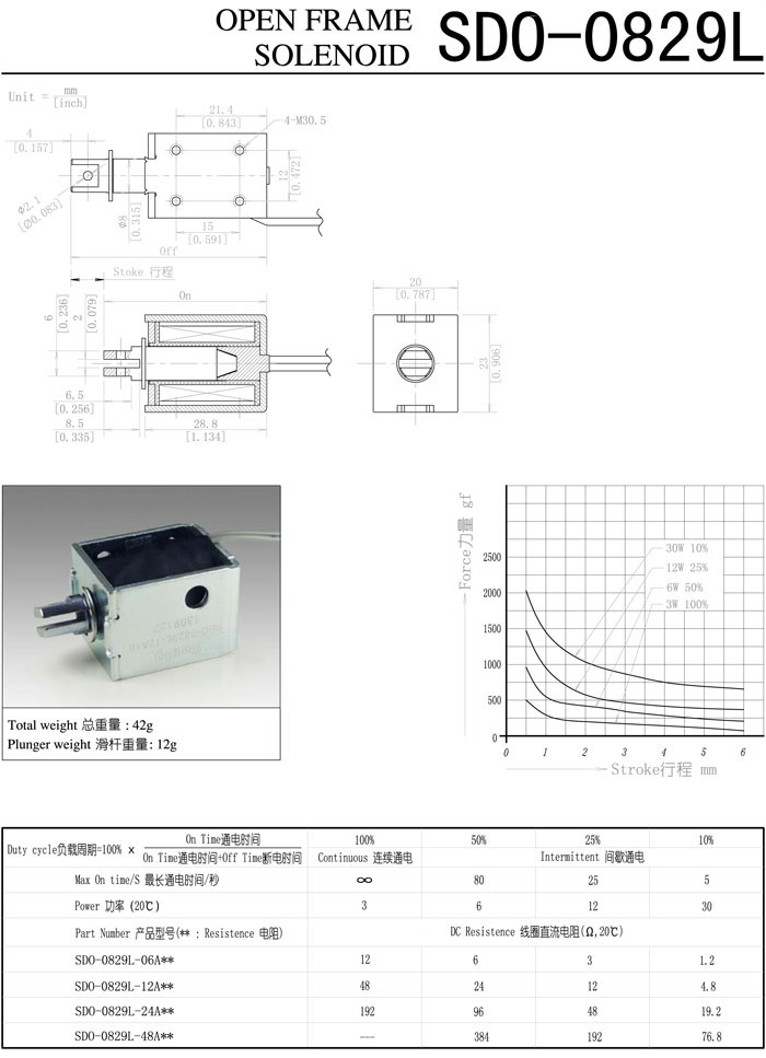 詳細信息 SDO-0829L-06A,SDO-0829L-12A,SDO-0829L-24A,SDO-0829L-48A,直動電磁鐵