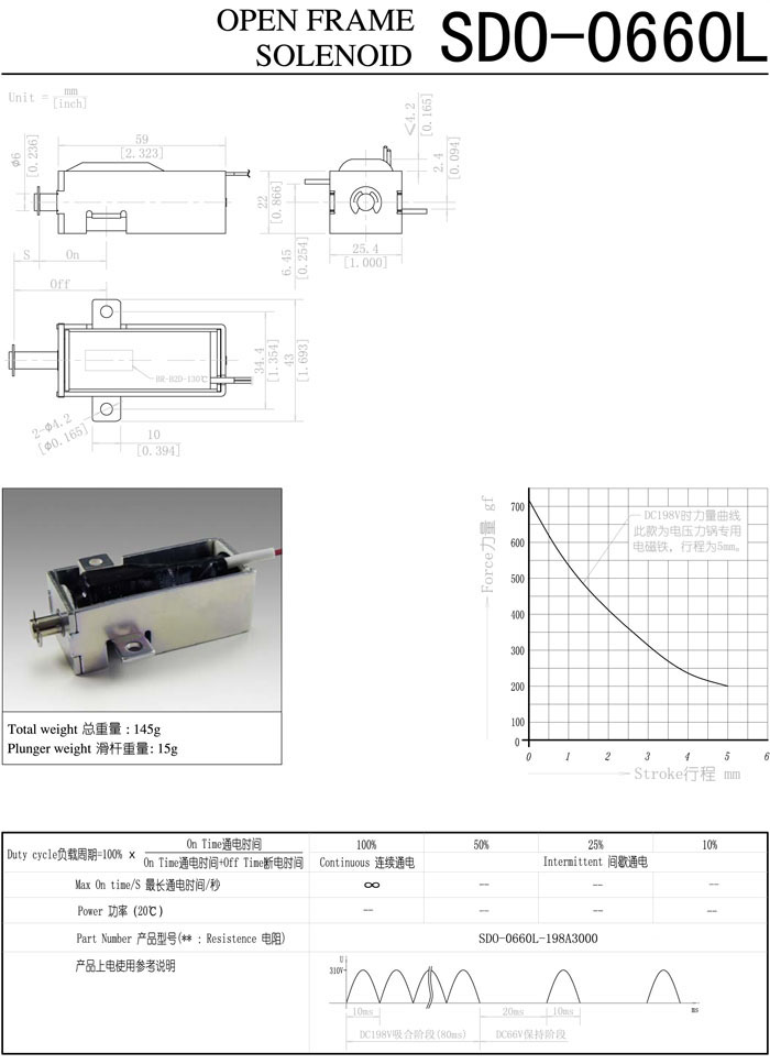 詳細(xì)信息 SDO-0660L-198A3000,直動(dòng)電磁鐵