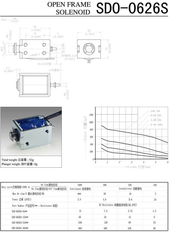 SDO-0626S-6A,SDO-0626S-12A,SDO-0626S-24A,SDO-0626S-48A,直動電磁鐵