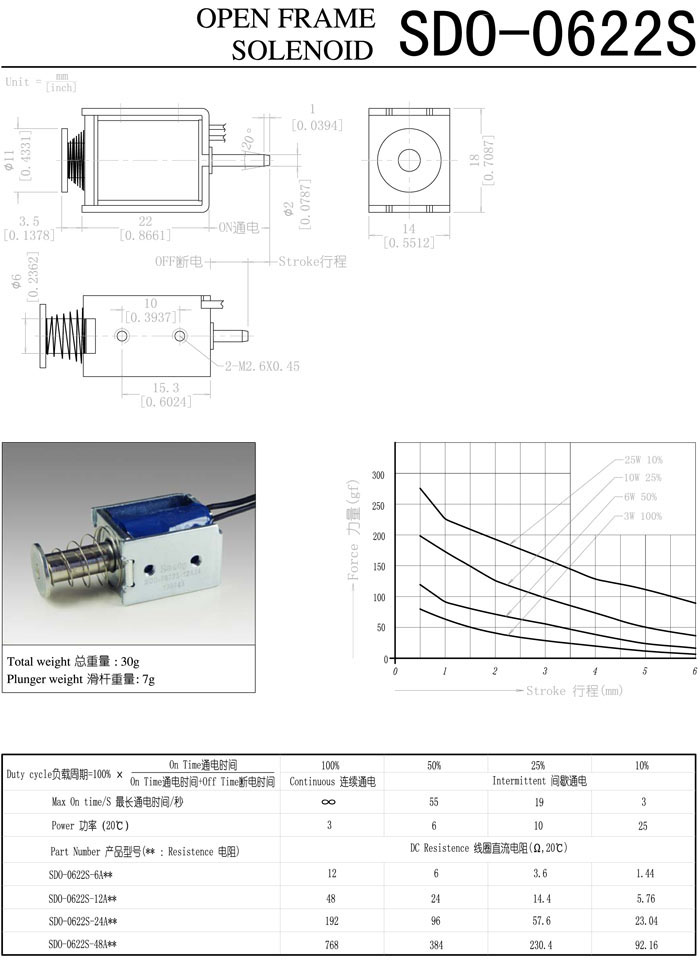 SDO-0622S-6A,SDO-0622S-12A,SDO-0622S-24A,SDO-0622S-48A,直動電磁鐵