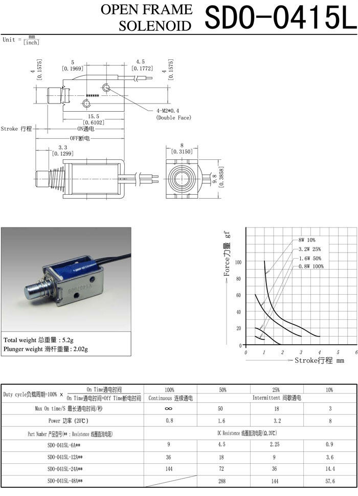 詳細(xì)信息 SDO-0415L-6A,SDO-0415L-12A,SDO-0415L-24A,SDO-0415L-48A,直動電磁鐵