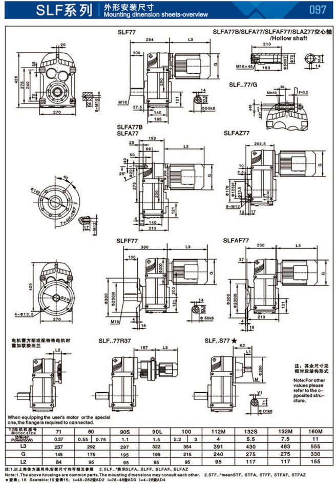 SLF37,SLF47,SLFA57B,SLFA67,SLF77,SLFA87B,SLFZ97,SLFA107,SLFAF127,SLFF157,平等軸斜齒輪減速機(jī) |