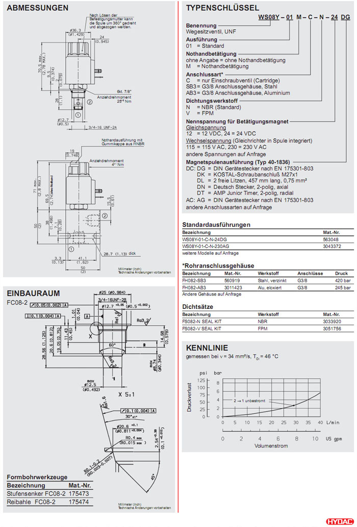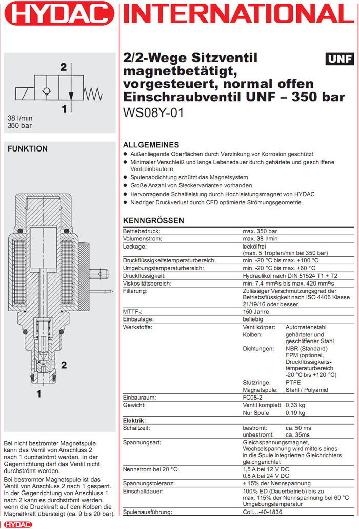 WS08Y-01-C-N-24DG,WS08Y-01-C-N-230AG,HYDAC電磁2/2方向座閥