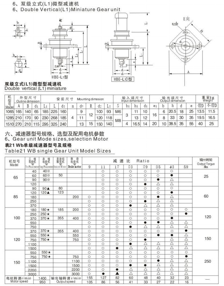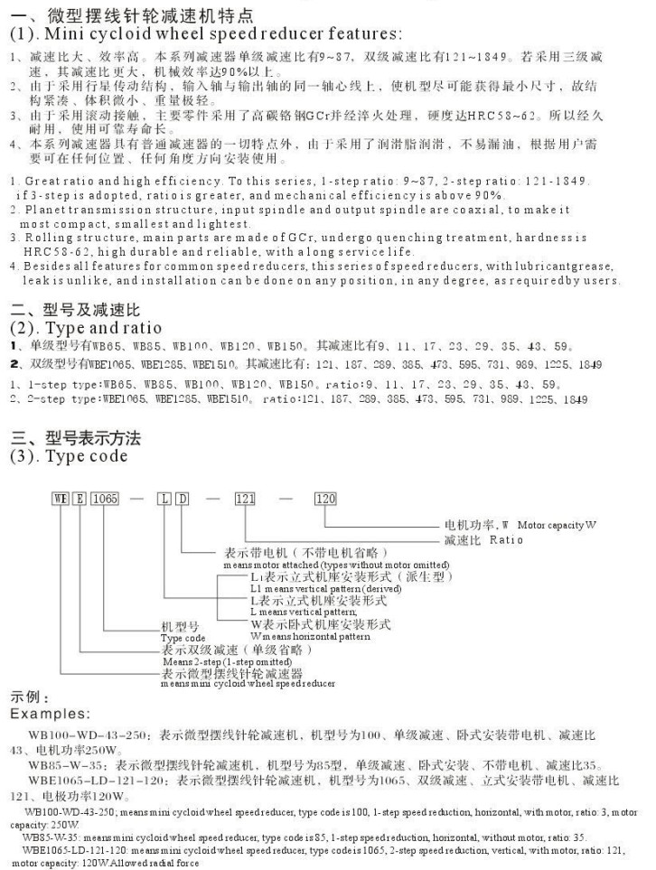 WB65,WB85,WB100,WB120,WB150,WBE1065,WBE1285,WBE1510,微型擺線針輪減速機(jī)