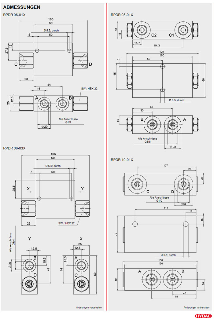 RPDR06-01X-0.5,RPDR06-01X-5,RPDR06-03X-0.5,RPDR08-01X-0.5,RPDR10-01X-1,RPDR10-02X-1,HYDAC止回閥