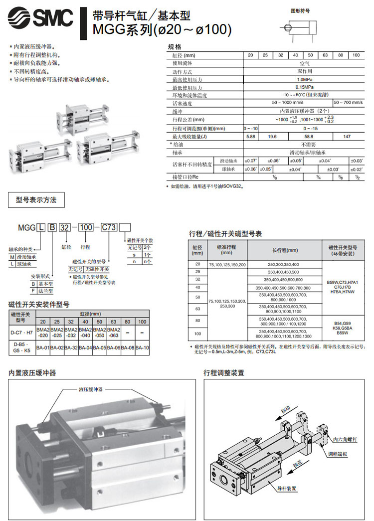 MGGMB20,MGGMB25,MGGMB32,MGGMB40,MGGMB50,MGGMB63,MGGMB80,MGGMB100,MGGMB20-75,SMC帶導(dǎo)桿氣缸