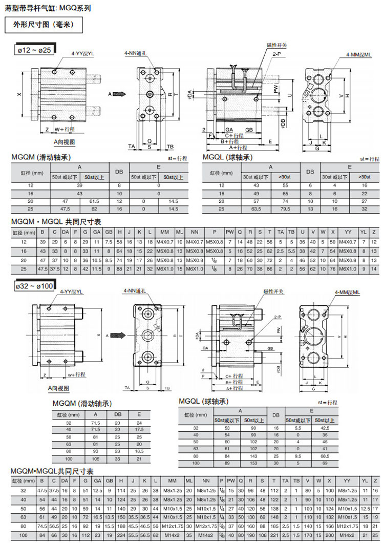 MGQL50-25,MGQL50-50,MGQL50-75,MGQL50-100,MGQL50-125,MGQL50-150,MGQL50-175,MGQL50-200,MGQL32-175,