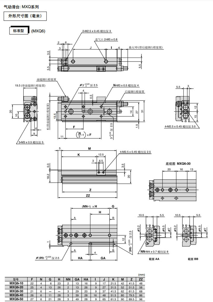 MXQ6-10,MXQ8-10,MXQ12-10,MXQ16-10,MXQ20-10,MXQ25-10,MXQ6-20,SMC氣動(dòng)滑臺(tái)氣缸