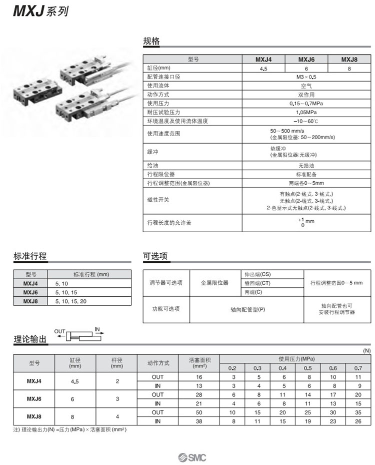 MXJ4-5,MXJ4-10,MXJ6-5,MXJ6-10,MXJ6-15,MXJ8-5,MXJ8-10,MXJ8-15,MXJ8-20,SMC氣動滑臺氣缸