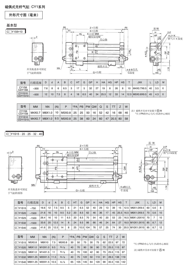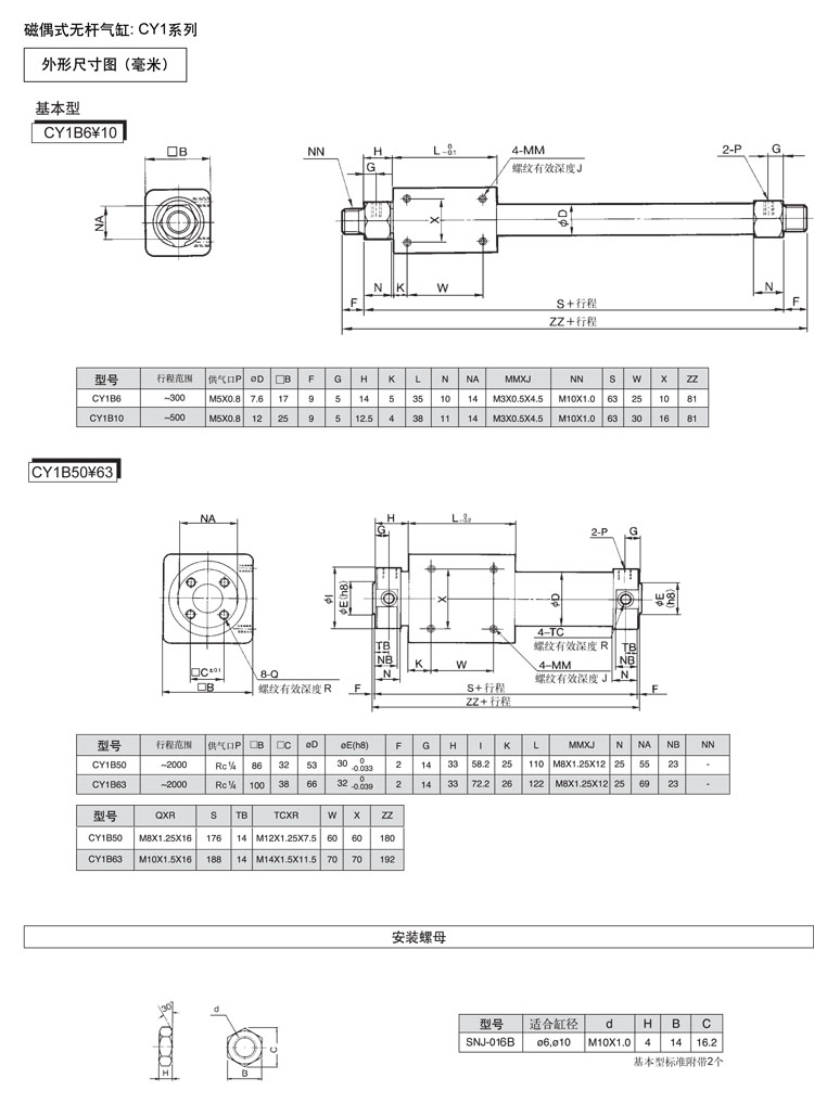 CY1B6H-50,CY1B10H-50,CY1B50H-50,CY1B63H-50,CY1B50L-50,CY1B63L-50,SMC磁偶式無桿氣缸
