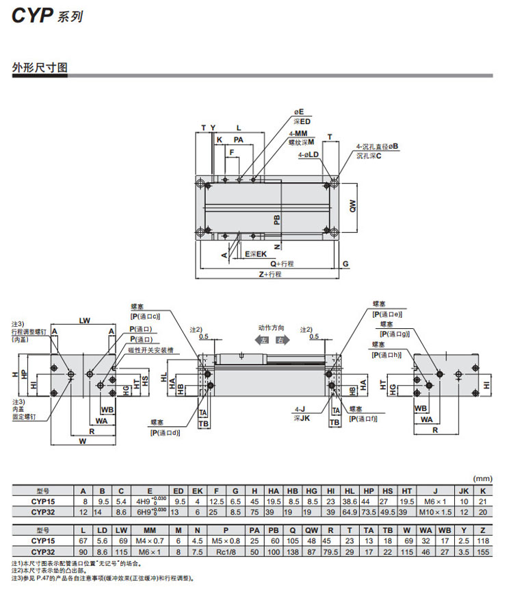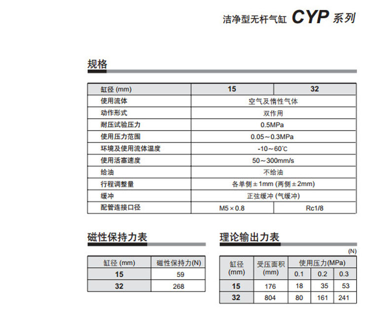 CYP15-100,CYP32-100,CYP15-150,CYP32-150,CYP15-200,CYP32-200,SMC潔凈型無桿氣缸
