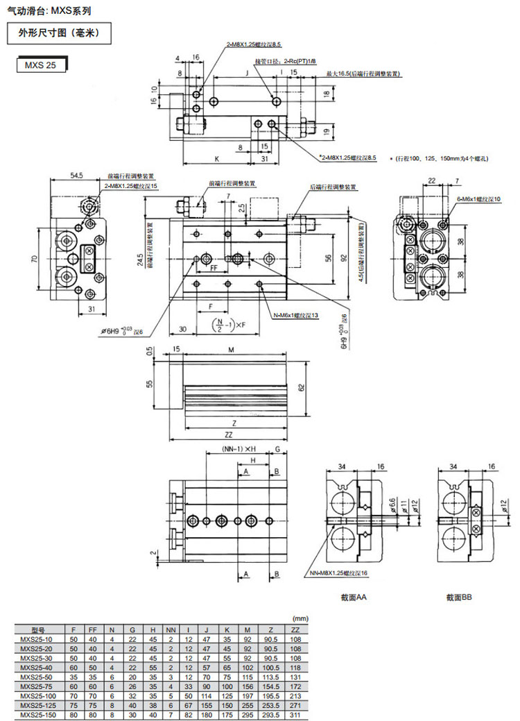MXS25-75,MXS25-100,MXS25-125,MXS25-150,