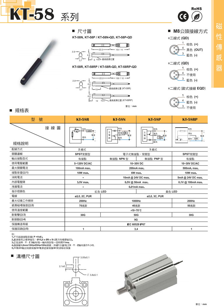 KT-58N,KT-58P,KT-58R,KT-58RP,KT-58N-QD,KT-58P-QD,KT-58R-QD,KT-58RP-QD,KIDA磁性傳感器 |