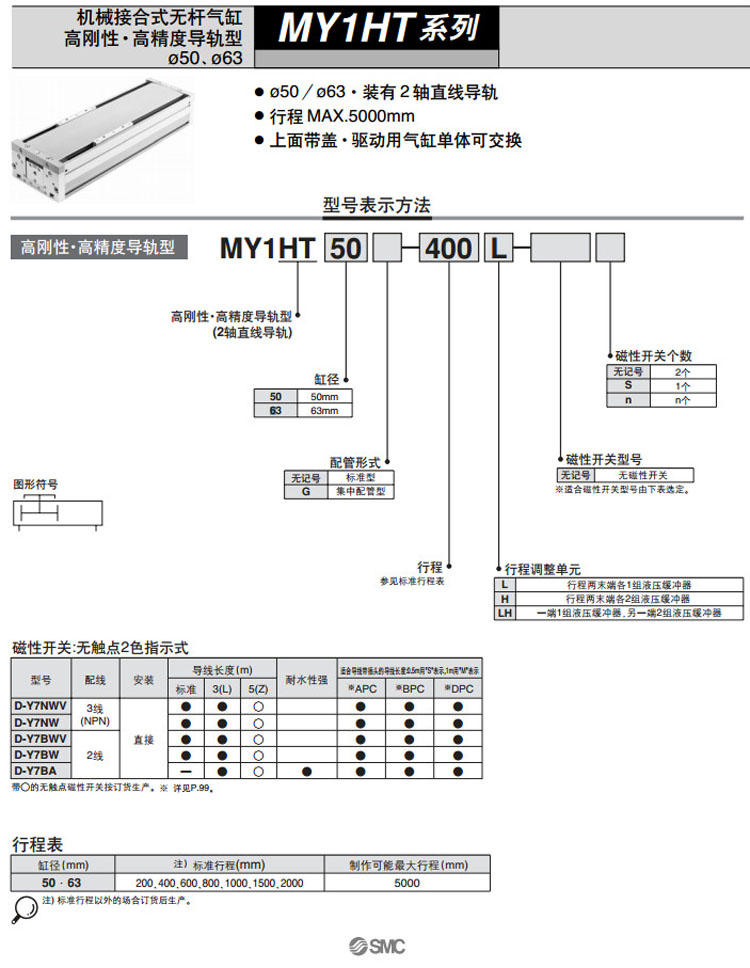 MY1HT50,MY1HT63,SMC無桿氣缸
