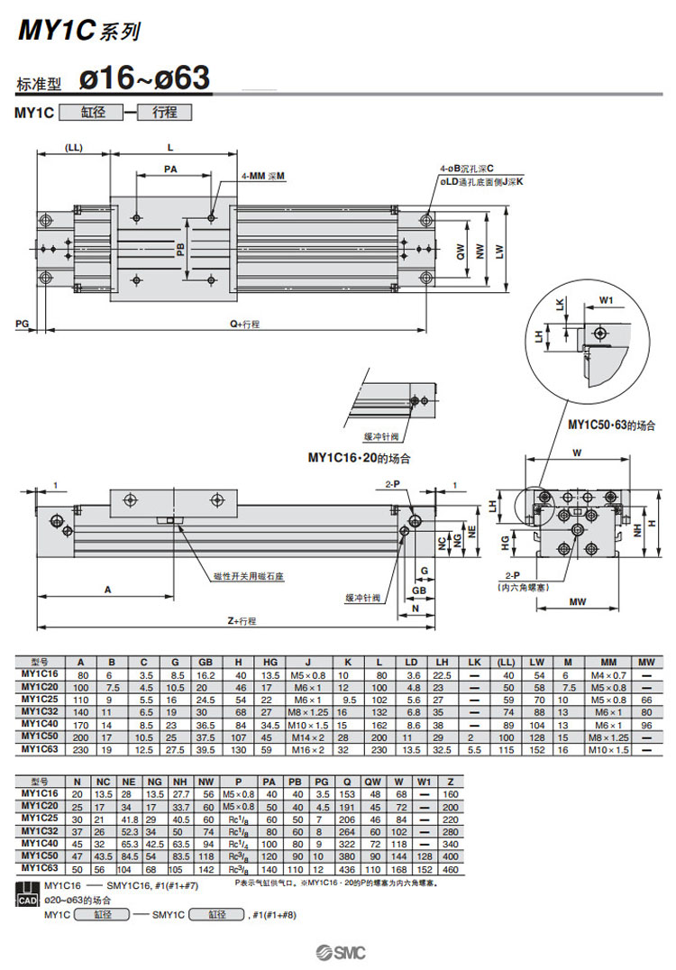 MY1C20-1000,MY1C20-1200,MY1C20-1400,MY1C20-1600,MY1C20-1800,MY1C20-2000,