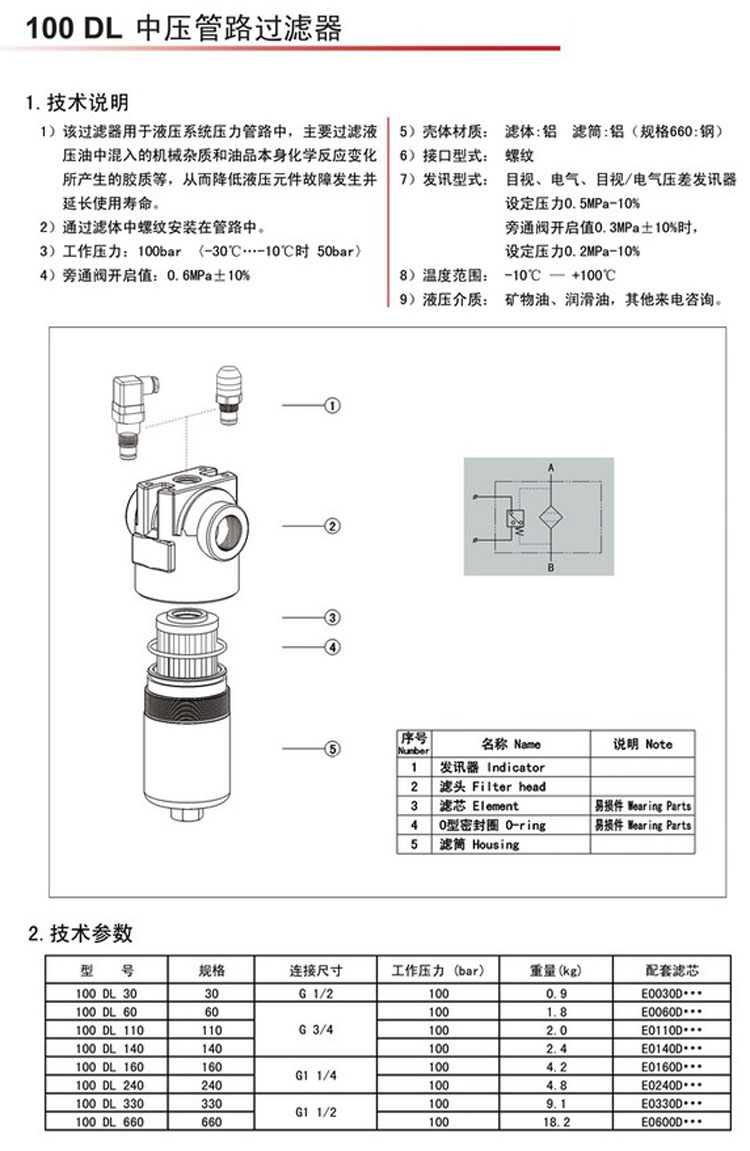 100DL30,100DL60,100DL110,100DL140,100DL160,100DL240,100DL330,100DL660,中壓管路過濾器 |