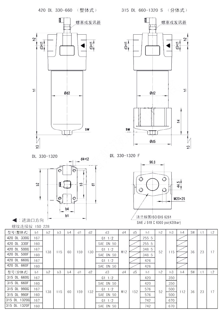 420DL330,420DL500,420DL660,315DL660S,315DL990S,315DL1320S,420DL330KN3,420DL660KN20,單筒高壓管路過濾器 |