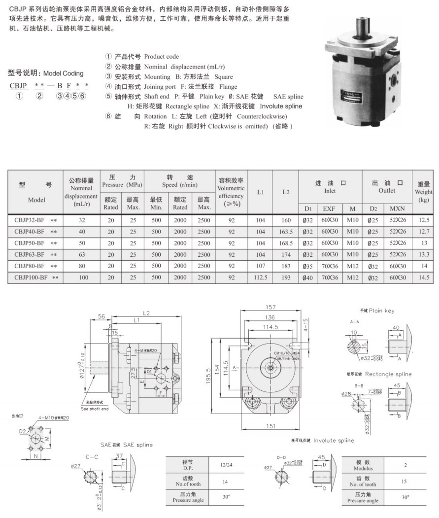 CBJP32-BF,CBJP40-BF,CBJP50-BF,CBJP63-BF,CBJP80-BF,CBJP100-BF,齒輪油泵