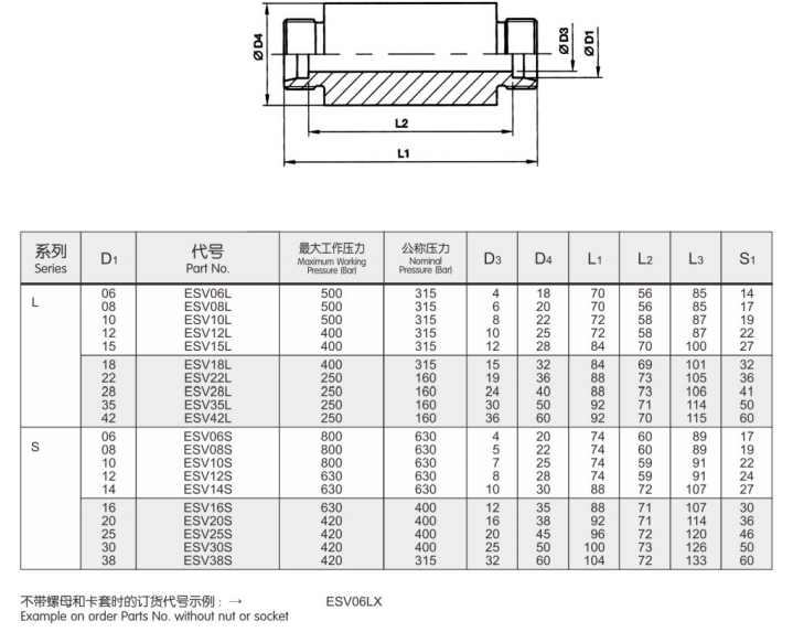 ESV06L,ESV08L,ESV10L,ESV12L,ESV15L,ESV16S,ESV20S,ESV25S,ESV30S,ESV38S,隔板式焊接接頭