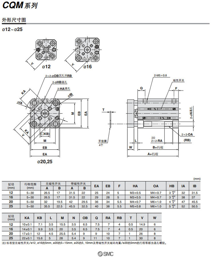 CQMB12,CQMB16,CQMB20,CQMB25,CQMB32,CQMB40,CQMB50,CQMB63,CQMB80,CQMB100,CQMB12-5,SMC薄型氣缸