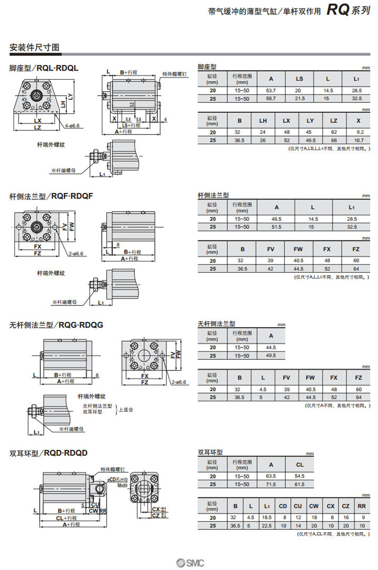 RQB20,RQL20,RQF20,RQG20,RQD20,RQA32,RDQB20,RDQL20,RDQF20,RDQG20,RDQD20,RDQA32,SMC薄型氣缸