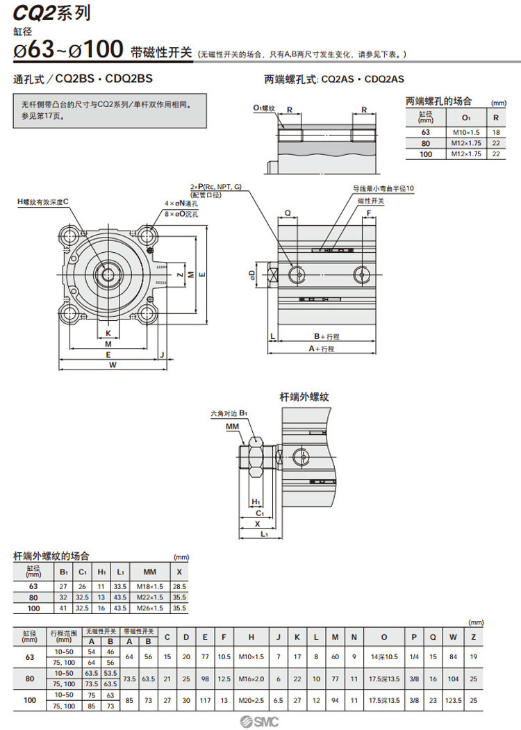 CQ2BS32,CQ2BS40,CQ2BS50,CQ2BS63,CQ2BS80,CQ2BS100,CDQ2BS32,CDQ2BS40,CDQ2BS50,CDQ2BS63,CDQ2BS80,CDQ2BS100,SMC薄型氣缸