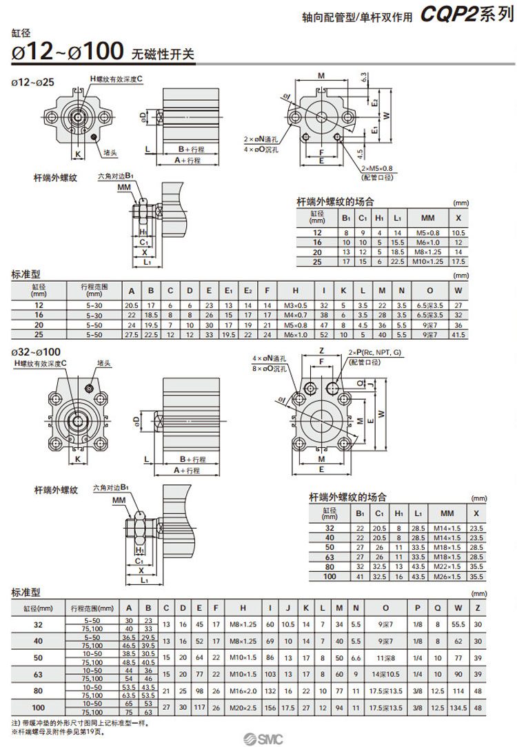 CQP2B12-5D,CQP2BH20-5D,CDQP2B12-5D,CDQP2BH20-5D,CQP2B12-10D,SMC軸向配管型氣缸