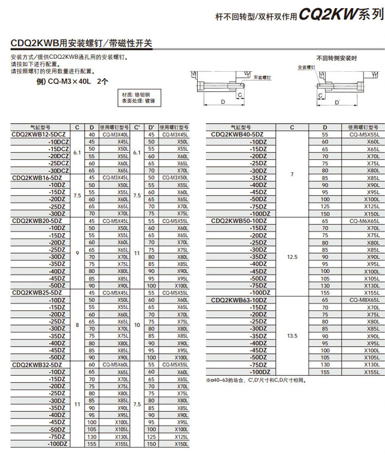 CQ2KWD40-25D,CQ2KWD40-30D,CQ2KWD40-35D,CQ2KWD40-40D,CQ2KWD40-45D,CQ2KWD40-50D,CQ2KWD40-75D,CQ2KWD40-100D,CQ2KWD50-10D,