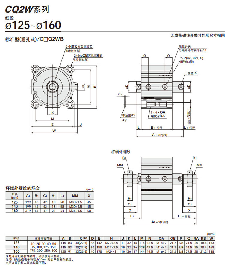 CQ2WB160-100D,CQ2WB160-125D,CQ2WB160-150D,CQ2WB160-175D,CQ2WB160-200D,CQ2WB160-250D,CQ2WB160-300D,