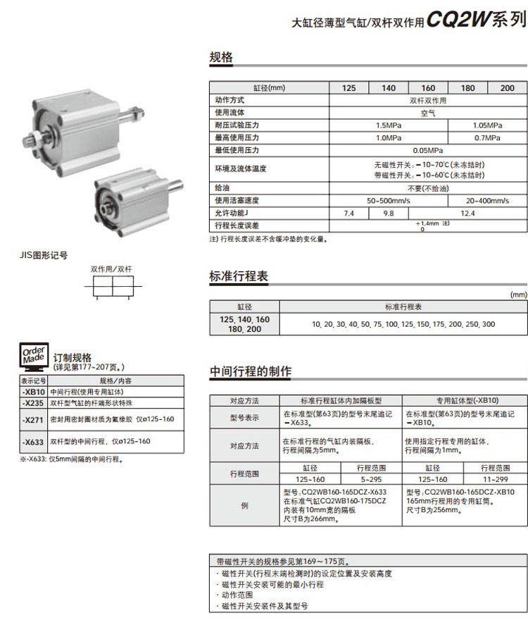 CQ2WB125-150D,CQ2WB125-175D,CQ2WB125-200D,CQ2WB125-250D,CQ2WB125-300D,CQ2WB140-10D,CQ2WB140-20D,CQ2WB140-30D,