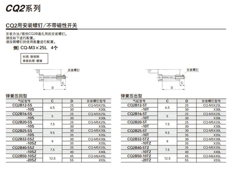 CQ2B12-5S,CQ2B16-5S,CQ2B20-5S,CQ2B25-5S,CQ2B32-5S,CQ2B40-5S,CQ2B50-10S,CQ2L12-5S,CQ2L16-5S,CQ2L20-5S,