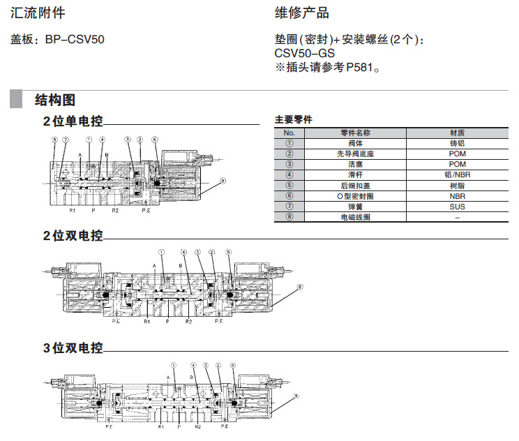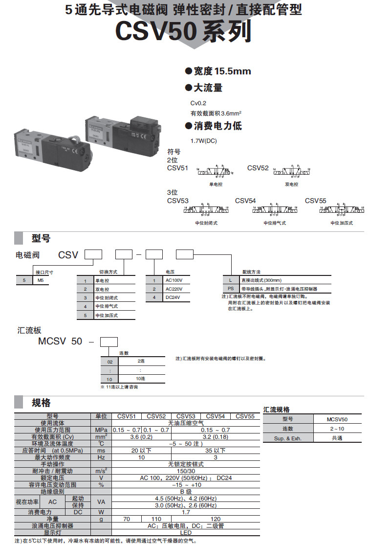 CSV51-1L,CSV52-2L,CSV53-4L,CSV54-1PS,CSV55-2PS,CSV51-4PS,5通先導(dǎo)式電磁閥