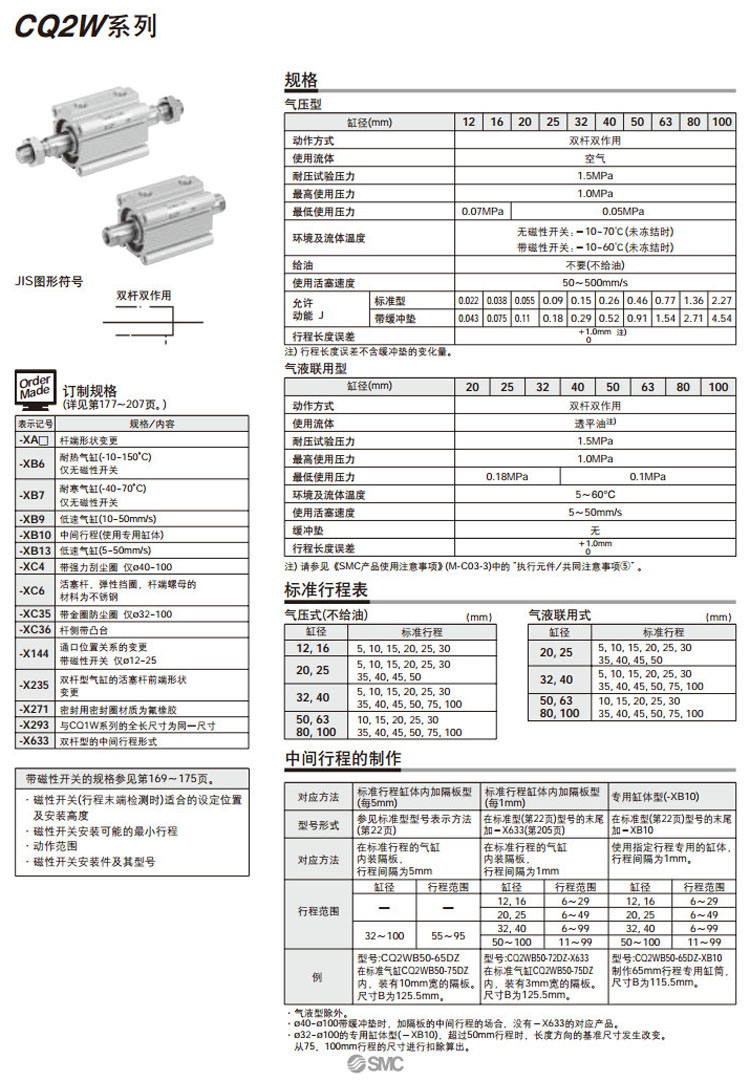 CQ2WB20-50,CQ2WB25-50,CQ2WB32-50,CQ2WB40-50,CQ2WB50-50,CQ2WB63-50,CQ2WB80-50,CQ2WB100-50,