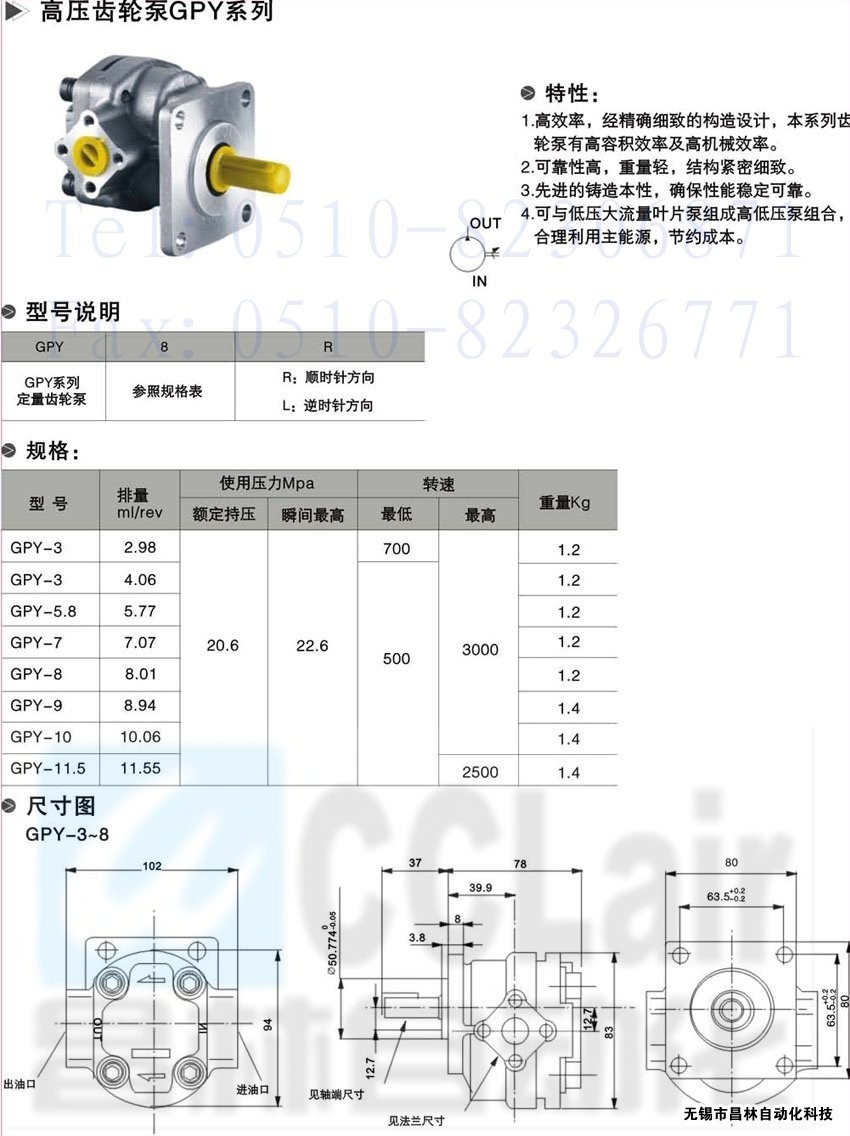 GPY-9,GPY-10,GPY-11.5,高壓齒輪泵