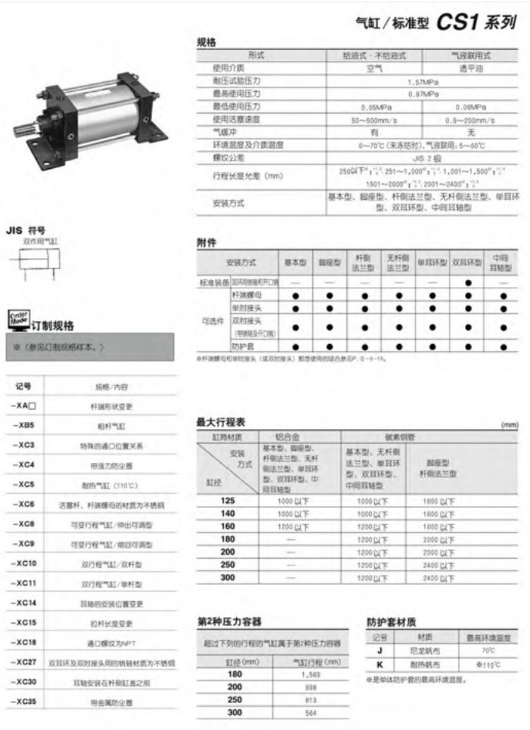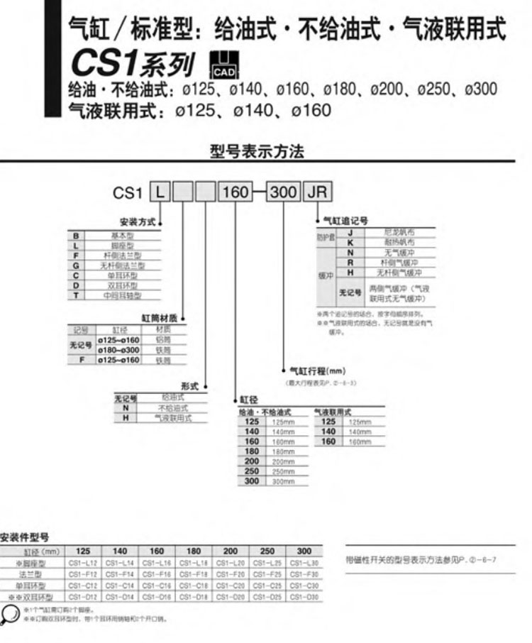 CS1B125-300,CS1L125-300,CS1F125-300,CS1G125-300,CS1C125-300,CS1D125-300,CS1T125-300,SMC標(biāo)準(zhǔn)型氣缸